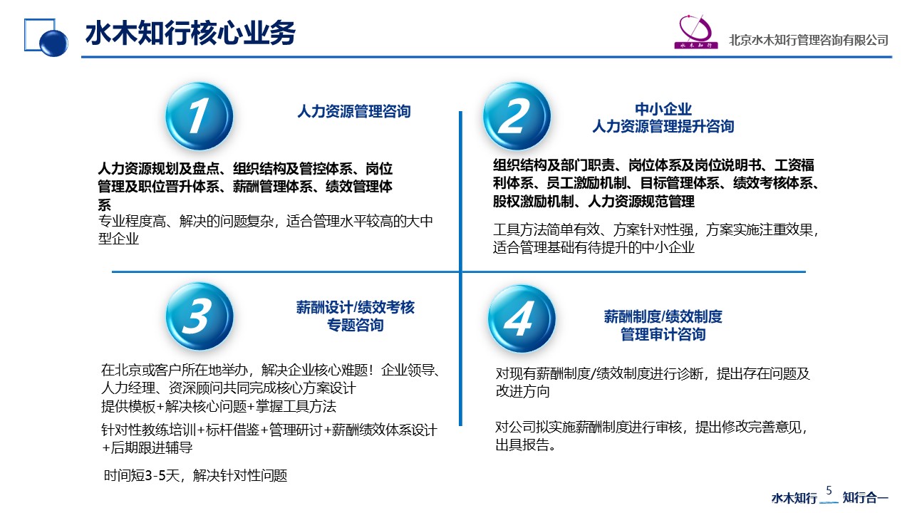 北京水木知行管理咨詢有限公司(www.bjsmzx_com.crdjd.com)專注提供人力資源管理咨詢、人力資源管理培訓、人力資源招聘咨詢、人力資源獵頭服務業務;咨詢業務范圍包括組織結構與管控體系、崗位管理體系、薪酬管理體系、績效管理體系,咨詢形式包括全過程咨詢、教練式咨詢和特訓班;培訓業務包括企業基礎管理...[詳情]